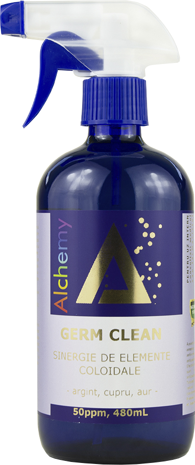 Germ Clean este un amestec sinergic de minerale coloidale, 100% natural: argint, cupru, aur (total 50ppm).