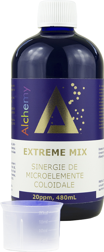 Extreme Mix este un amestec sinergic de minerale coloidale: aur, cupru, zinc.