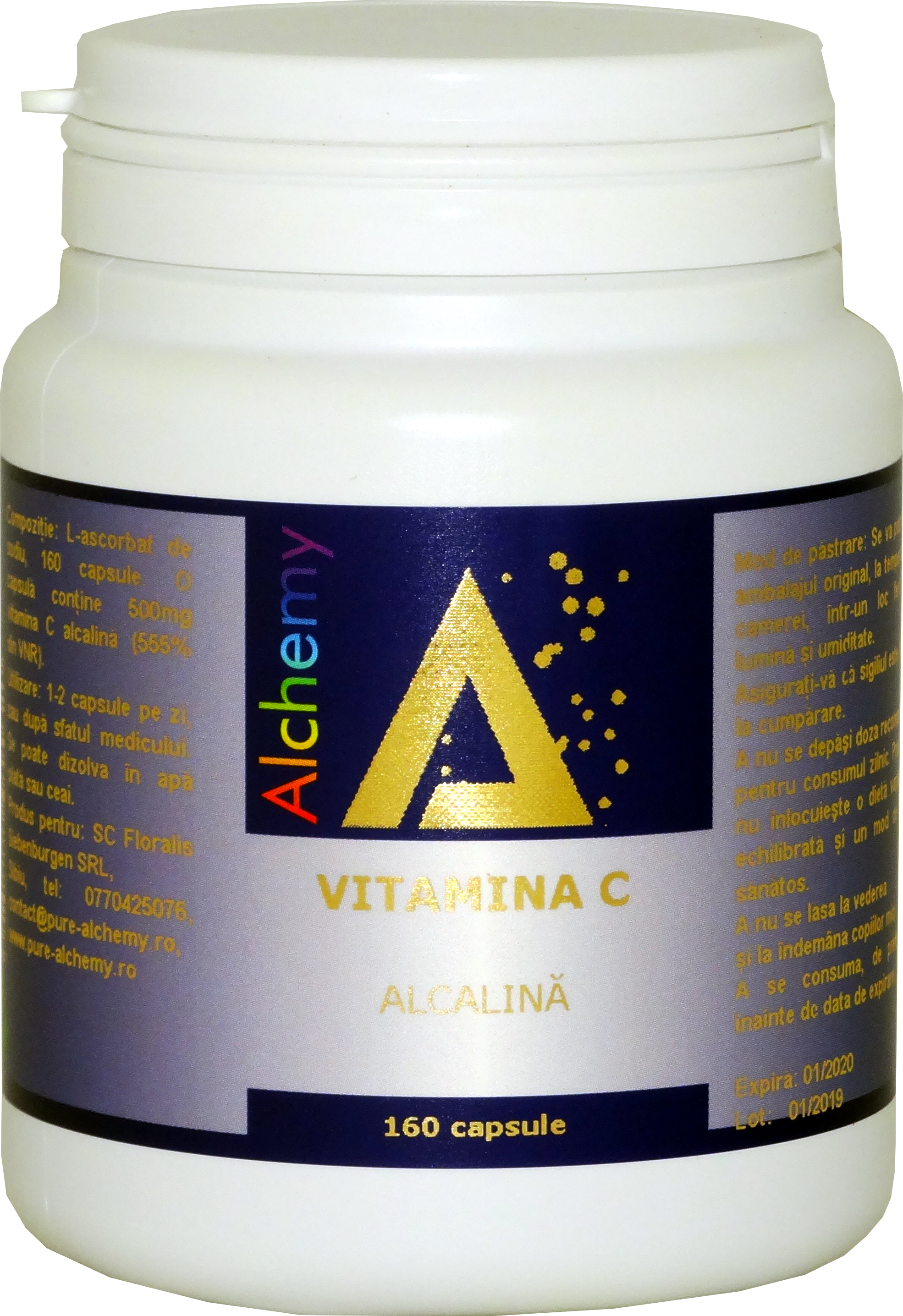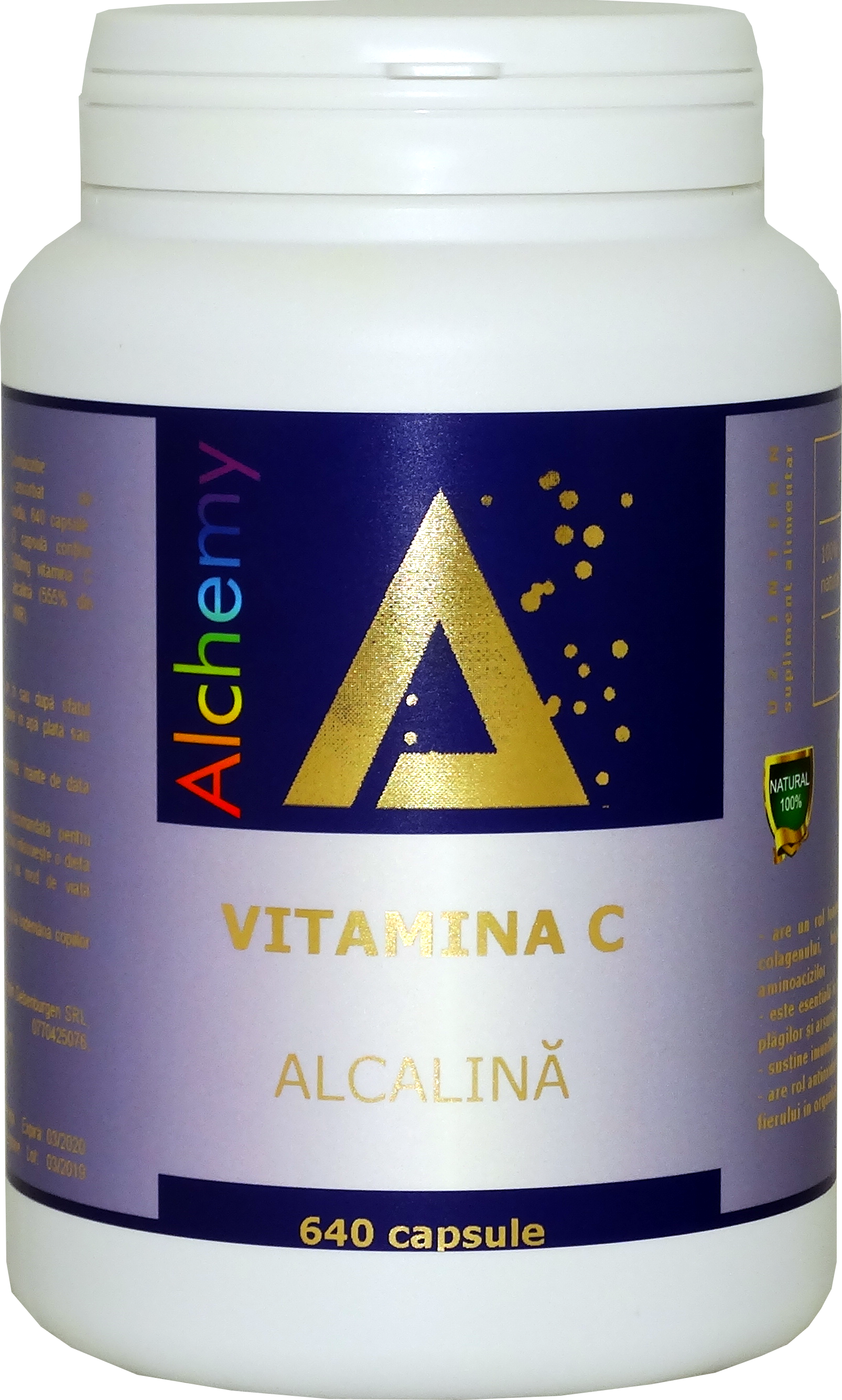 Vitamina C alcalină, 100% naturală, capsule vegetale