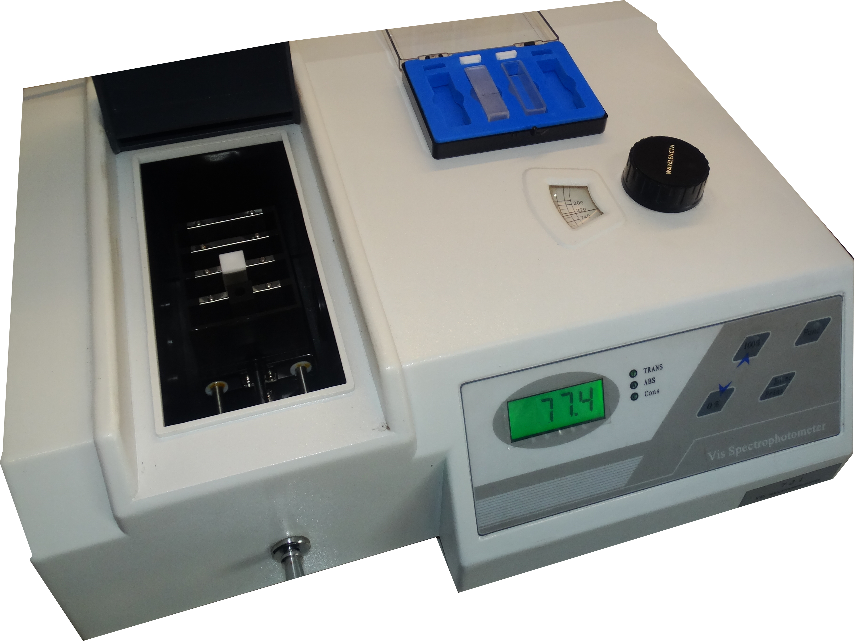 spectrul vizibil, un instrument mai accesibil ca preț decât un spectrometru cu absorbție atomică, dar totuși ... nu chiar pentru uz casnic. El necesita utilizarea unei mostre calibrate, care trebuie refacuta o data la fiecare  6-12 luni.